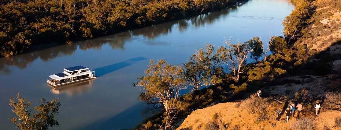 Take a 4-day escape and cruise along the Murray River in South Australia on a custom designed luxury houseboat and soak up the sun while you take in the tranquil sounds of nature with Murray River Trails. Through ancient redgum forests, alongside winding creeks, and around outback lakes, your experienced guides will lead you on daily walks and share stories of culture, history, and environmental stewardship.