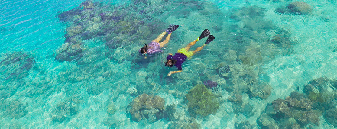 Keep it natural: Lizard Island has some of the best snorkeling spots on the Great Barrier Reef just metres from shore, so grab a snorkel and dive in. Marvel at giant clams and eye-catching corals, swim among shoals of brightly-coloured fusiliers, or float above turtles as they graze on abundant sea grass beds.
