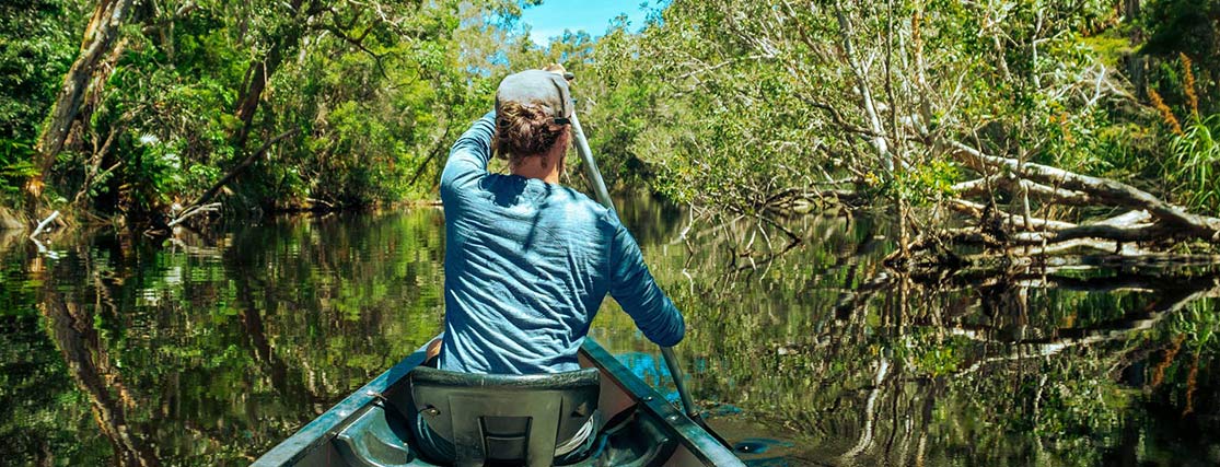Ever heard of the Noosa Everglades? It’s one of only two everglades systems in the world and an absolute must-see on the Sunshine Coast. Imagine paddling through glassy, mirrored waterways that reflect the towering trees and endless sky above. Ancient rainforests cradle the shoreline and the peaceful silence is broken only by birdsong or the gentle splash of your paddle.