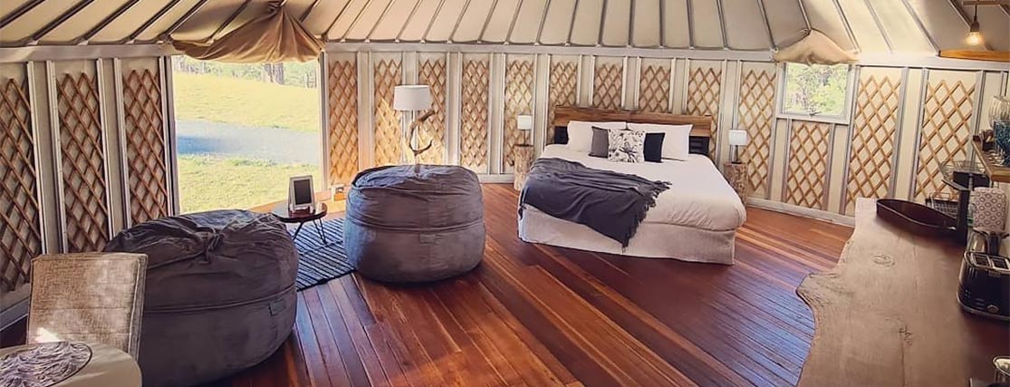 In the heart of Noosa’s biosphere you’ll find Noosa Eco Retreat – a collection of luxurious self-contained eco-luxe yurts set on over 100 private acres complete with king-sized bed, ensuite and well-equipped kitchenette. Surrounded by trees and with a glass wall to enjoy the spectacular view from the inside you feel entirely ensconced by nature, and it’s perfect the getaway when you want to focus on relaxation.