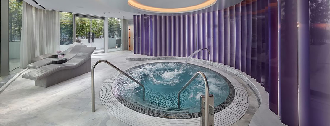 This underground spa sanctuary at The Langham hotel boasts a 20 metre heated indoor pool underneath a star-dappled sky ceiling plus a hot tub, steam room and gymnasium – all of which day spa visitors have complimentary access to.