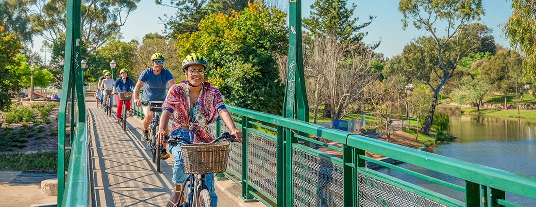 From the bustling heart of the city to the serene coastline and rolling hills, cycling in Adelaide provides the freedom to soak up every historic landmark, lush parkland, local market and art-filled laneway at your own pace.