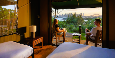 If you’re craving an immersive nature experience without straying far from the city, Roar and Snore at Taronga Zoo offers a NSW glamping escape like no other. Tucked within the zoo’s grounds, safari-style tents overlook Sydney Harbour, offering a front-row seat to sunrise skies and twinkling city lights. The experience includes gourmet meals, intimate animal encounters and guided night safaris – all designed to deepen your connection with the natural world. Falling asleep to the calls of wildlife and waking to the glow of dawn over the harbour is both grounding and unforgettable.