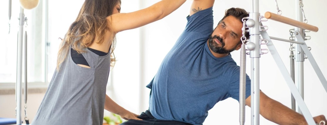 Mat Pilates is a great starting point, where you’ll learn the fundamentals with just a mat and an experienced instructor guiding you through each move. It’s accessible, effective and a great way to learn the basics.