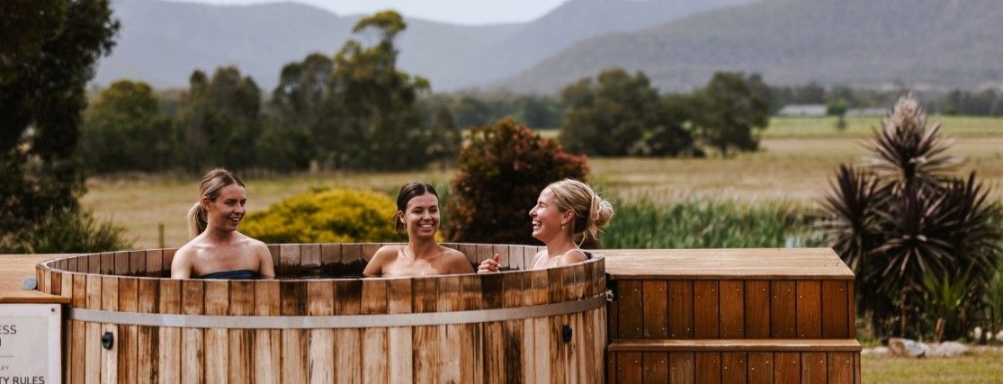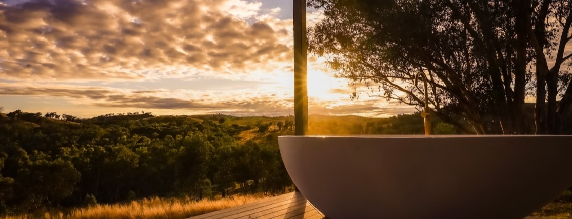 The 280-acre property holds six accommodation options, each with its own outdoor tub for you to soak in the suds as well as the panoramic views. Located in the flourishing Mudgee region, we recommend taking advantage of the local food and wine scene before retreating back to your private oasis.