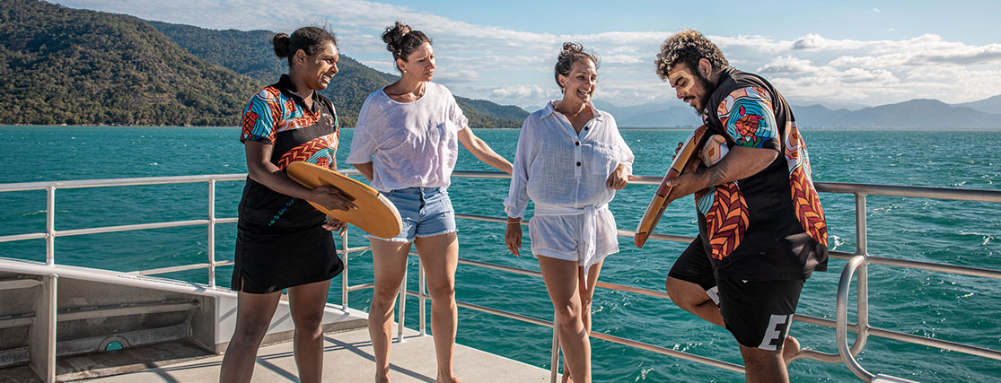 A day out with Dreamtime Dive and Snorkel is more than a chance to explore the reef’s magnificent coral gardens and the creatures that make their homes there, from colourful angel fish and clown fish to clams, anemones and turtles. It is also a chance to learn the stories of the area’s traditional owners – the Gimuy Walubara Yidinji, Gunggandji, Mandingalbay and Yirrganydji people – and understand how for thousands of years they helped maintain this complex eco-system.