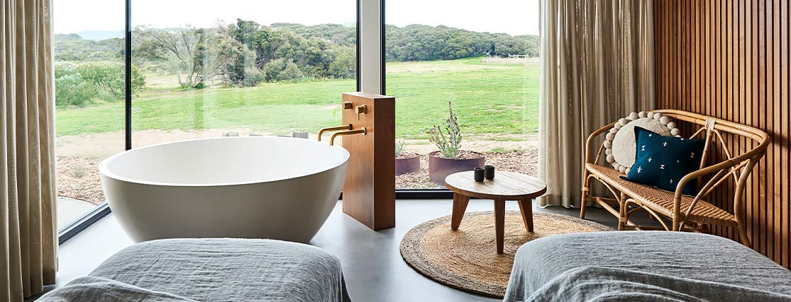 Rambling around rock pools. Watching clouds drift across the sky. A game of bocce on the lawn, or a session stretching it out on a yoga mat. All of these things might be on your itinerary when you check in at Lon Retreat & Spa on the Bellarine Peninsula – except at Lon Retreat, there is no such thing as an itinerary. This intimate adults-only retreat is all about easing off the accelerator, releasing the pressure and discovering the delight of doing not very much, not very fast. If you need to kickstart the process, a session in Lon Spa – perhaps a soak in a tub of natural mineral water, followed by a tension-dissolving massage – will do the trick.