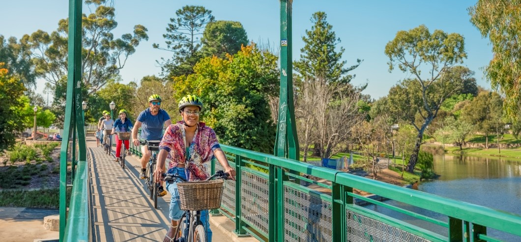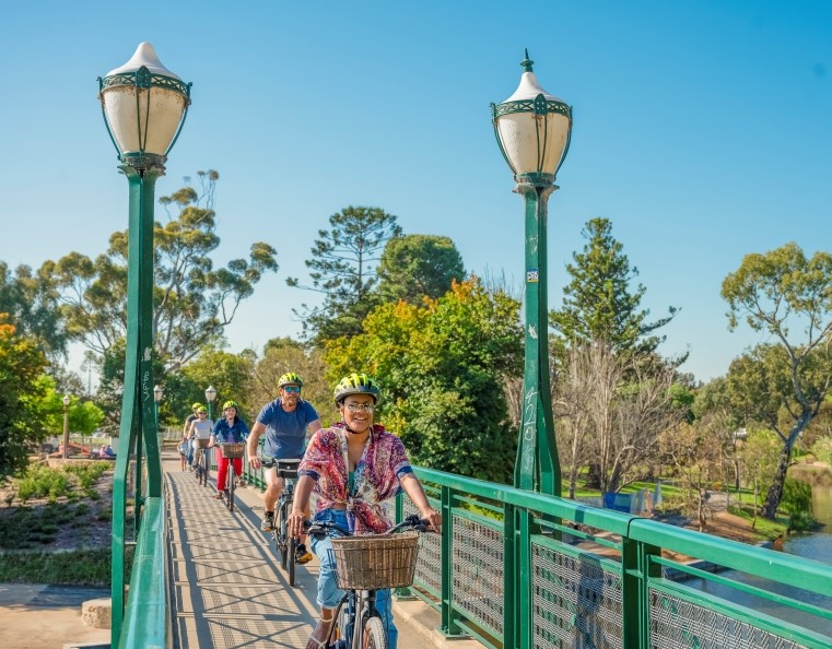 Continue along the Riverbank Precinct and you’ll arrive at the National Wine Centre of Australia where it’s time to enjoy a delicious Charcuterie Board and Australian Wine Flight before taking a stroll through the Botanic Gardens for some nature therapy. Head across to Botanic Park, and the giant Moreton Bay Fig Trees, and past the Adelaide Zoo, before a final cruise alongside the idyllic River Torrens and a return to your starting point.