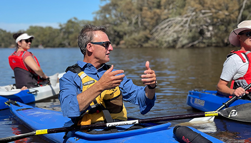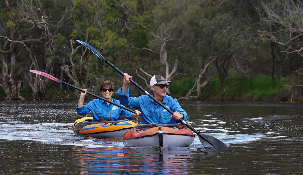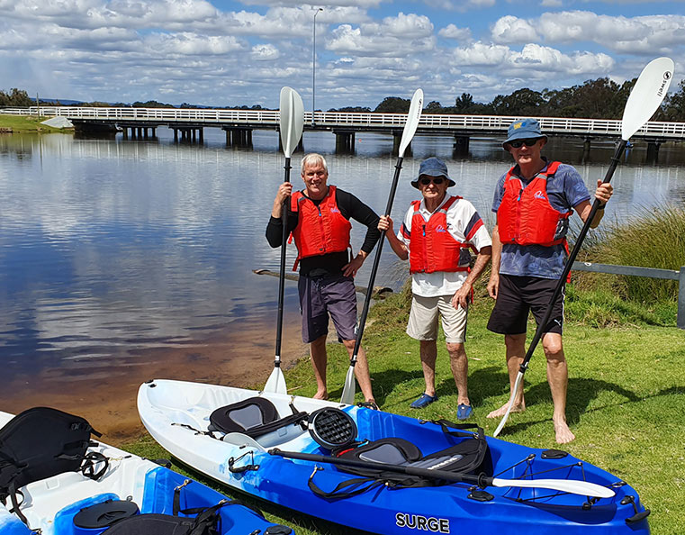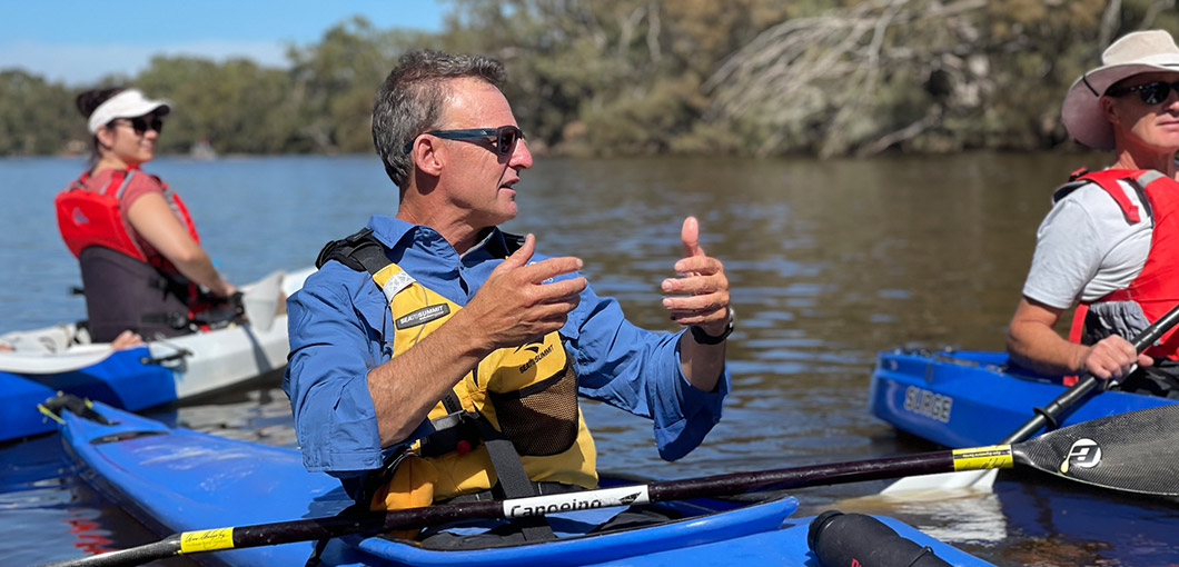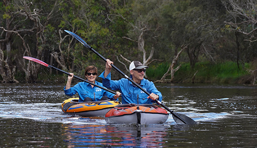 The tour includes a stop at the Kent Street Weir for a well-earned cafe break before heading back along the calm, sheltered waters.