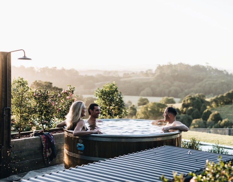 The gorgeous self-contained villas have solid oak floors, high ceilings, expansive glass windows and doors allowing the hinterland views to flow inside. Each bedroom has a private ensuite, a filtered rainwater shower and a free-standing bath overlooking the countryside.