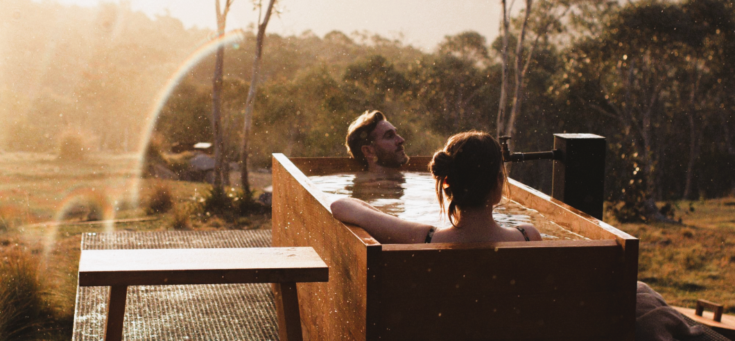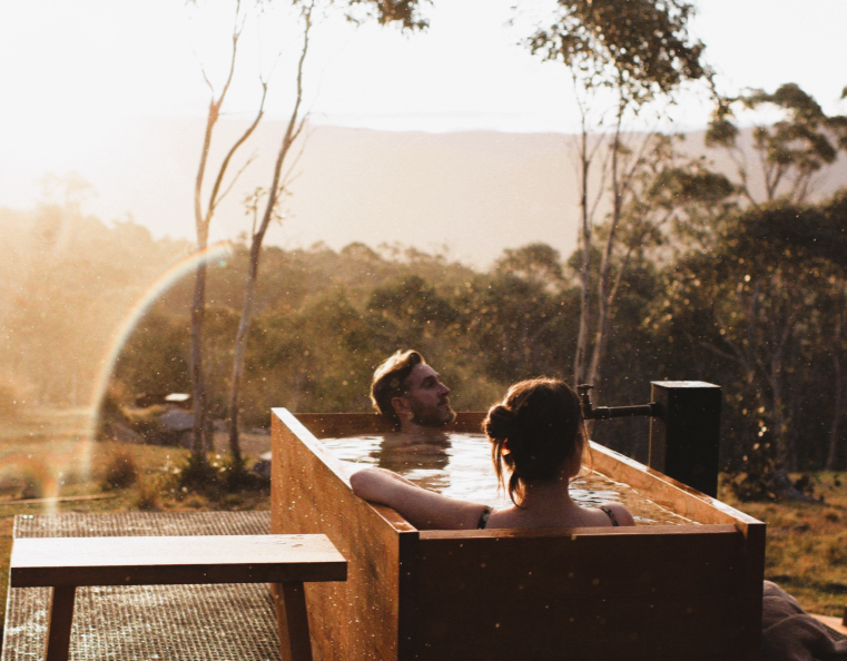 This luxury off-grid cabin sleeps two, and it’s been carefully designed to have a minimal impact on the planet, while enriching your experience. There’s a cosy kitchen (with custom ceramic dinnerware), gorgeous bathroom and an outside Wood fired timber bath to soak the day away (and a bespoke timber sauna is coming to the property soon!).