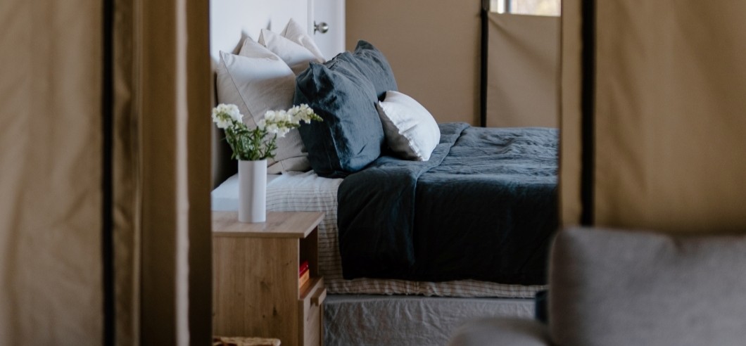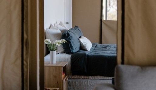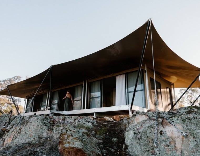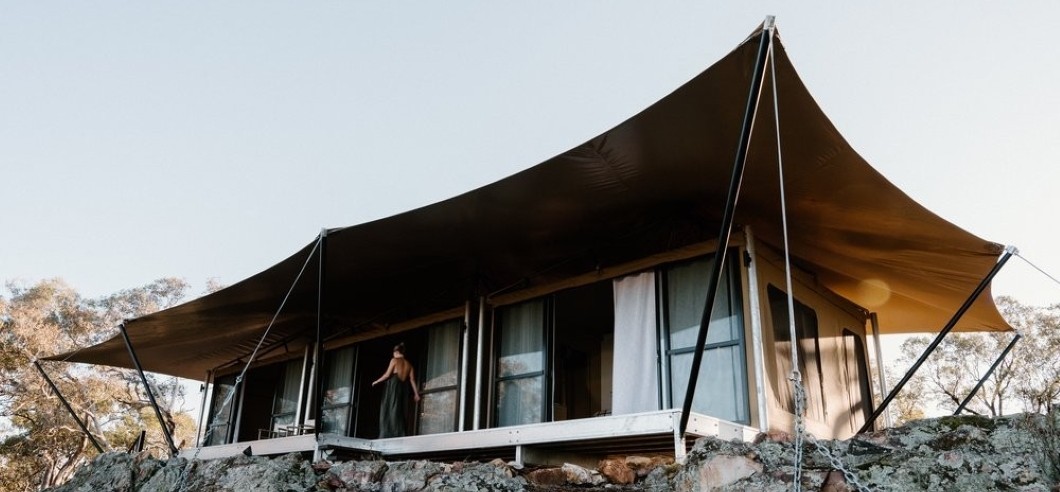 Set on Budgalong Farm, spanning 7000-acres of Australian countryside just outside Mudgee in NSW, each of the two secluded safari-style tents feature 2 king bedrooms with expansive ensuite bathrooms and dressing areas. The living room has stunning views over the hills and the property, with the perfect balance of casual luxury and sophisticated charm, opening up to a beautiful veranda.