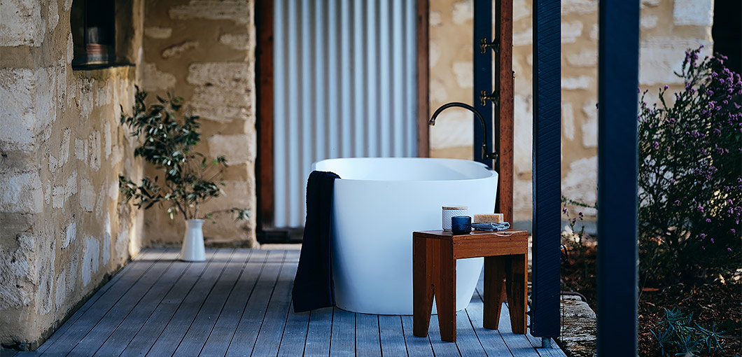 Owners Jamie and Lara also offer gorgeous self-contained accommodation – bungalows made from natural materials, with full kitchens, wood fires and spacious entertaining areas (and some with outdoor stone baths).