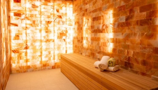 It includes access to the Halotherapy Salt Room, where the beautiful pink salt brick walls and soft lighting create a calm and soothing atmosphere. The air around you is infused with micro-particles of pure salt, promoting deep respiratory benefits and overall relaxation. Halotherapy has been used for centuries and harnesses the natural power of salt to detoxify the body, clear the sinuses, and support respiratory health.