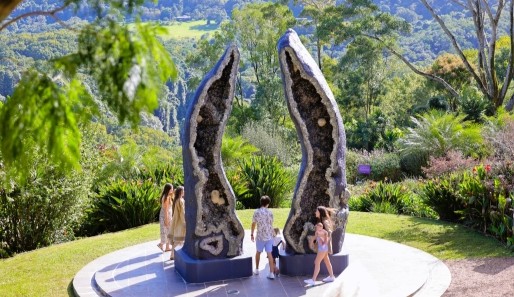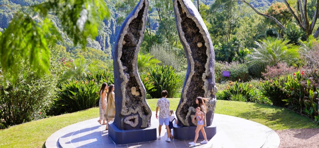 Breathe in the clean air as you explore 5 hectares of lush botanical gardens, including a regenerated rainforest with 10,000 native trees. Stand between the towering 5.5m Crystal Guardians – the tallest smoky quartz geodes ever found. Sit inside the Dragon Egg (a 120-million-year-old amethyst crystal cave) and marvel at the 20 tonne Enchanted Cave, filled with millions of sparkling amethyst crystals.