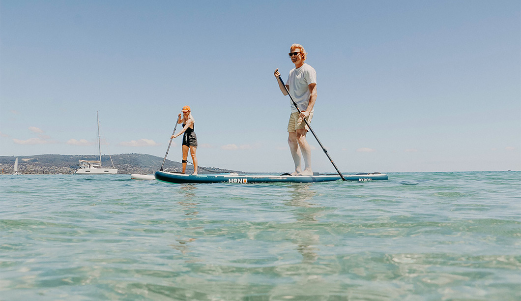 Your experienced WAM guide will provide a short introduction before you cruise along the lake, enjoying the peaceful setting and keeping an eye out for kangaroos on land, white bellied eagles in the sky, and turtles in the water. After soaking up the tranquillity, it’s time to paddle back to land for a lakeside breakfast with fresh local produce. Once refuelled, you’ll take a scenic coastal drive to the next SUP safari location – a hidden beach that only locals know about. Paddle along the magnificent coastline looking for dolphins and rays while exploring the secret coves, then jump in for a snorkel in the crystal-clear waters.