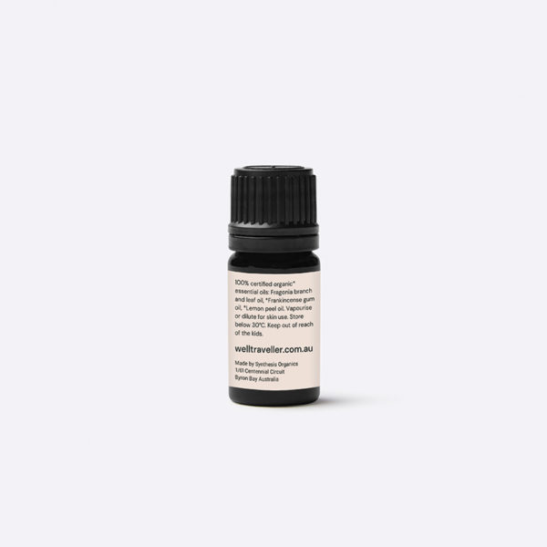 Ingredients: Agonis fragrans (Fragonia) branch/leaf oil, Boswellia carterii (Frankincense) Gum oil, Citrus limon (Lemon) peel oil.