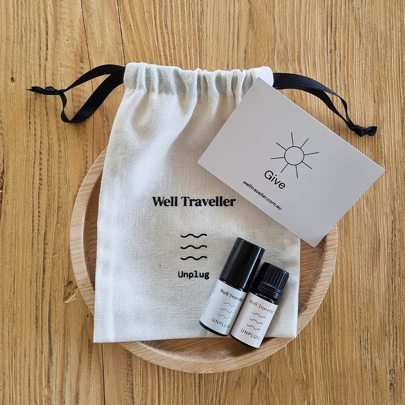 Wellness for you, your friends or family. Reset with this gorgeous gift bundle featuring our Unplug essential oil and roll-on and the Unplug mobile pouch to truly switch off.