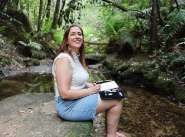 a lady sitting in a rainforest and sketching in the NSW Blue Mountains